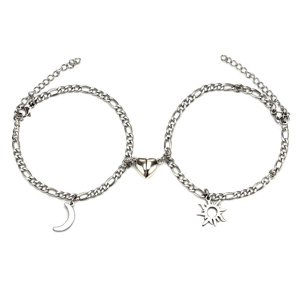 2Pcs Sun Moon Charm Magnet Attraction Stainless Steel Bracelets For Couples Men Women Jewelry Wholesale Valentine’s Day Gifts