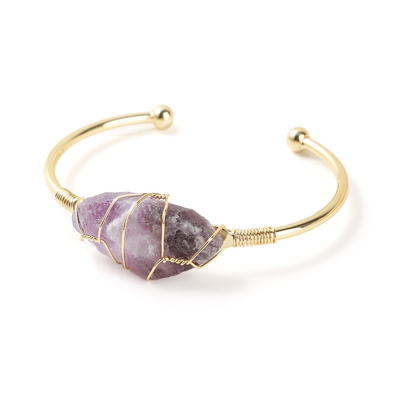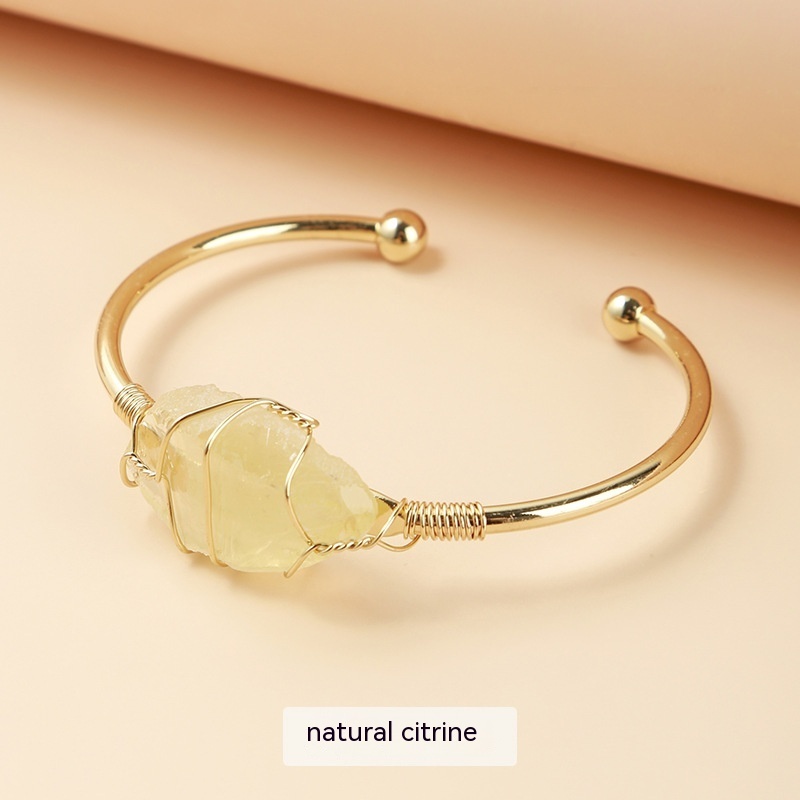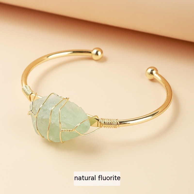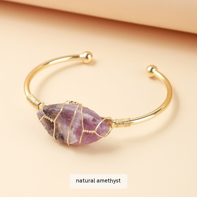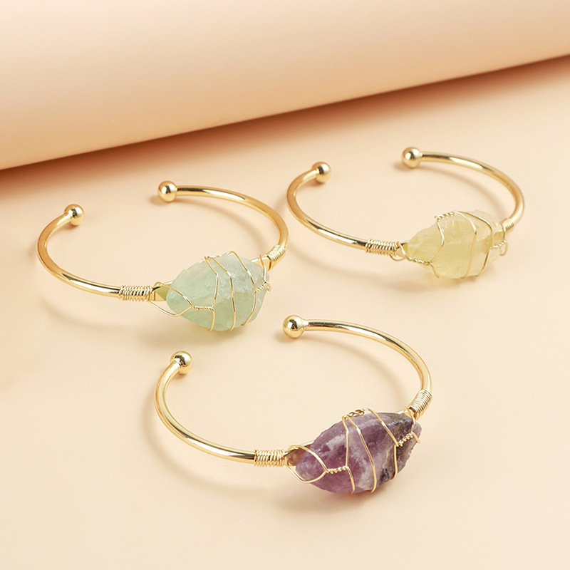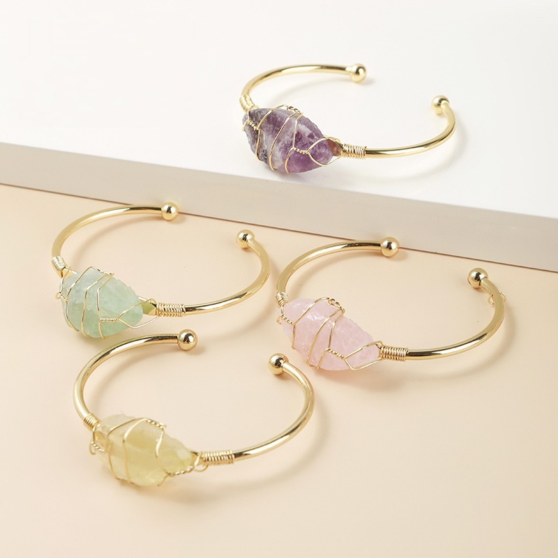 Color: natural pink crystal rough stone round copper wire gold bracelet, natural fluorite rough stone round copper wire gold bracelet, natural citrine rough stone round copper wire gold bracelet, natural amethyst rock rough stone round copper wire gold bracelet
