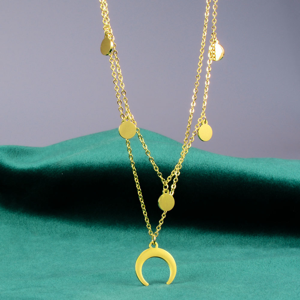 Asterism Round Round Plate Inverted Crescent Moon Necklace